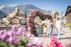 Pagina: Garni Kleefeld Immagine: kl-Tourismusverein-Schenna-Dietmar-Denger-Dorf.jpg Titolo: Coppia sotto il cuore floreale a Scena Autore: Tourismusverein Schenna - Dietmar Denger |